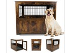 Hundekäfig XXL Hundebox Drahtkäfig Gitterbox Vintage Holz Beistelltisch Design