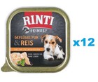 12x150 g RINTI Feinest Geflügel und Reis Filetstücke adulte Hunde